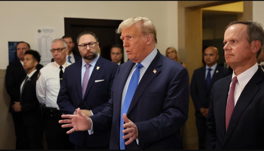 Dès son arrivée lundi au tribunal de Manhattan pour son procès pour fraude, l’ancien président Donald Trump s’est adressé aux médias en parlant de « simulacre ».